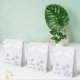 Unique simple wedding favour box featuring romantic and elegant dusty blue flowers and butterflies on light blue background