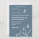 Unique simple wedding invitation featuring romantic and elegant dusty blue flowers on light blue background