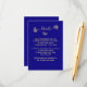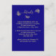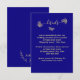 Unique simple calligraphy wedding enclosure card featuring romantic and elegant gold flowers on royal blue background