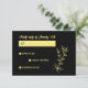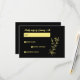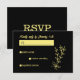Romantic elegant gold flower black wedding RSVP card