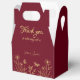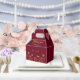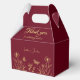 Unique simple wedding favour box featuring romantic and elegant gold flowers and butterflies on burgundy background