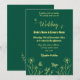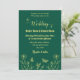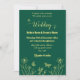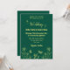 Unique simple wedding invitation featuring romantic and elegant gold flowers on emerald green background