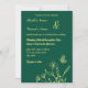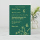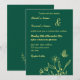 Unique simple wedding invitation featuring romantic and elegant gold flowers on emerald green background