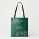 Romantic elegant gold flower emerald green tote bag