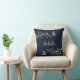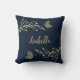 Unique simple throw pillow featuring romantic and elegant gold flowers on navy background