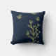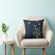 Unique simple throw pillow featuring romantic and elegant gold flowers on navy background