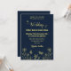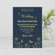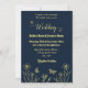 Romantic elegant gold flower navy invitation