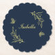 Unique simple wedding paper coaster featuring romantic and elegant gold flowers and butterflies on navy background