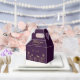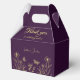 Unique simple wedding favour box featuring romantic and elegant gold flowers and butterflies on purple background