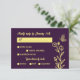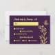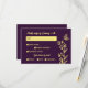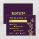 Romantic elegant gold flower purple wedding RSVP card