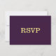 Unique simple wedding response card featuring romantic and elegant gold flowers on purple background