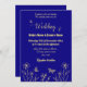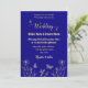 Romantic elegant gold flower royal blue invitation