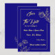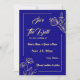 Unique simple wedding save the date featuring romantic and elegant gold flowers on royal blue background