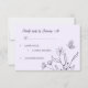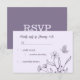 Unique simple wedding response card featuring romantic and elegant mauve flowers on light purple background