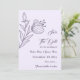 Unique simple wedding save the date invitation featuring romantic and elegant mauve flowers on light purple background