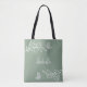Unique simple tote bag featuring romantic and elegant white flowers on sage green background
