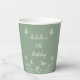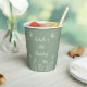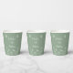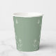 Unique simple wedding paper cup featuring romantic and elegant white flowers and butterflies on sage green background