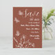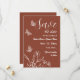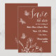 Unique simple wedding save the date featuring romantic and elegant white flowers and butterflies on terracotta background