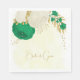Romantic emerald green & white flowers with gold leaves botanical wedding paper napkin.