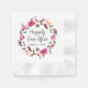 These romantic fairytale happily ever after wedding napkins are perfect for a garden wedding. The design features pink, peach and purple watercolor roses and peonies arranged in a dainty floral frame. Personalise the napkins with the names of the bride and groom.