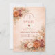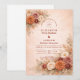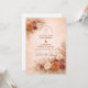 Inspired by rich autumn florals and romantic seasonal palettes, this wedding design features layered roses, dahlias, and soft foliage in warm rust, blush, and cream tones. The painterly floral border frames the layout beautifully, creating a refined yet inviting atmosphere that feels both classic and celebratory.