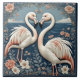 Romantic Flamingo Couple Art Deco Blue Pond Floral Tile