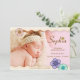 This soft romantic design with contemporary flower illustrations and a faint paisley background is a darling way to announce your new baby girl. Personalise with your baby's photo and information. There is actually room for a photo on the back as well! Need help? Feel free to contact me at info@missNnick.com.