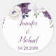 Romantic Floral Purple Silver Personalise Wedding Classic Round Sticker