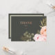 A beautiful, vintage, romantic thank you card with a deep olive green background, pink-coral flowers and foliage. Perfect as a bridal shower thank you, a wedding thank you, birthdays and more. (<a href="https://www.freepik.com/free-photos-vectors/brochure">Brochure vector created by BiZkettE1 - www.freepik.com</a>). <br/><br/>The card is easy to customise with your wording, font, font colour, paper shape options and choice of six paper types.<br/><br/>Not exactly what you're looking for? All our products can be custom designed to meet your needs at no extra charge.<br/><br/>Simply contact us at askcottonlamb@gmail.com.<br/><br/>Coordinating products available: Romantic Floral Bridal Shower Invitation<br/>Want something more? Just ask us!"