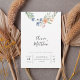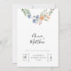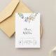 Invite your guests with effortless romance using this floral wreath wedding invitation. Featuring a delicate arrangement of soft watercolor-style flowers and greenery at the top, this design creates a light, joyful, and welcoming impression. The flowing script names paired with clean, modern text strike a beautiful balance between elegance and approachability.