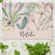 Romantic foliage watercolor monogrammed pink tea towel