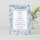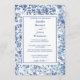 This refined design features a beautifully detailed blue toile floral border surrounding a classic framed layout, inspired by vintage European textiles and romantic garden estates. The delicate botanical pattern creates a sophisticated and graceful presentation, perfect for vineyard weddings, garden ceremonies, estate celebrations, and classic formal events.