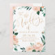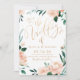 Modern calligraphy wedding script surrounded by watercolor peach floral and botanical greenery, elegant and romantic, great for modern wedding, romantic wedding, and botanical garden wedding in spring and summer.