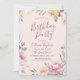 Modern calligraphy birthday party script surrounded by pretty watercolor floral in muted pastel yellow, peach, mauve and plum, great elegant birthday invitations.