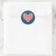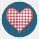 A sheet of twenty Round Stickers, with a Red and White Check Gingham Heart on a Deep Blue background that you can change if you wish. This design is part of the Posh & Painterly 'Hearts and Roses' collection by Judy Adamson.