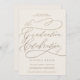 This romantic gold and ivory graduation celebration invitation is perfect for a simple grad party. The modern classic design features fancy swirls and whimsical flourishes with gorgeous elegant hand lettered faux champagne gold foil typography. Include additional details on the back of the card.
