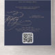 Romantic Gold and Navy Monogram QR Code Wedding All In One Invitation
