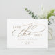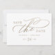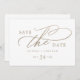 This romantic gold calligraphy QR code horizontal save the date card is perfect for a simple wedding. The modern classic design features fancy swirls and whimsical flourishes with gorgeous elegant hand lettered faux champagne gold typography.