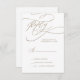 This romantic gold calligraphy simple RSVP card is perfect for a simple wedding. The modern classic design features fancy swirls and whimsical flourishes with gorgeous elegant hand lettered faux champagne gold faux typography.