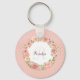 A romantic soft pink and FAUX gold coloured polka dots pattern keychain with an elegant rose floral wreath. Personalised this girly design by adding your name and monogrammed initial. Perfect to add a feminine touch to any room. Flat printed image, NOT actual gold.