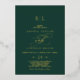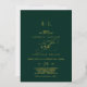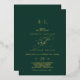 This romantic gold foil emerald monogram wedding invitation is perfect for a simple wedding. The modern classic design features fancy swirls and whimsical flourishes with gorgeous elegant hand lettered gold foil stamped typography on a dark emerald green background.
