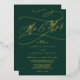 This romantic gold foil emerald Mr and Mrs wedding foil invitation is perfect for a simple wedding. The modern classic design features fancy swirls and whimsical flourishes with gorgeous elegant hand lettered gold foil pressed typography on a dark emerald green background.