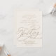 This romantic gold ivory details on back wedding invitation card is perfect for a simple wedding. The modern classic design features fancy swirls and whimsical flourishes with gorgeous elegant hand lettered faux champagne gold foil typography. Save paper by including the details on the back of the wedding invitation instead of on a separate enclosure card. Include the RSVP info as well if your guest will be replying electronically (optional).