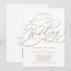 This romantic gold qr code all in one wedding invitation is perfect for a simple wedding. The modern classic design features fancy swirls and whimsical flourishes with gorgeous elegant hand lettered faux champagne gold foil typography. Save paper by including a QR code for your guest to view details, RSVP, or both.