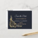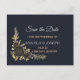 Romantic golden Floral Navy Blue Save the Date Announcement Postcard