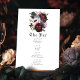 This goth floral raven wedding design features a simple, moody watercolor illustration of a raven perched on a bouquet. Perfect for a timeless romantic goth wedding or other special occasion. It is beautifully suited to a spooky Halloween event in the fall or a unique winter event in a casual or formal setting.