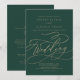 This romantic green calligraphy details on back wedding invitation card is perfect for a simple wedding. The modern classic design features fancy swirls and whimsical flourishes with gorgeous elegant hand lettered faux champagne gold foil typography. Save paper by including the details on the back of the wedding invitation instead of on a separate enclosure card. Include the RSVP info as well if your guest will be replying electronically (optional).