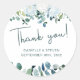 Romantic greenery eucalyptus names & wedding date classic round sticker