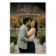 This wedding table card features a romantic scene with two individuals embracing in front of a greenhouse adorned with warm string lights, creating an intimate and cozy atmosphere. The design uses a soft color palette of muted greens, browns, and golden hues to evoke a tender and joyful mood. Elegant script typography highlights the table number, while clean sans-serif font provides clarity for names, ensuring a sophisticated yet contemporary look. Perfect for weddings or anniversaries, this card celebrates love and companionship with its realistic portrayal and heartfelt theme.