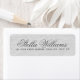 Elegant return address labels with your name in an elegant calligraphy script font and the address below on a PRINTED light grey linen background.